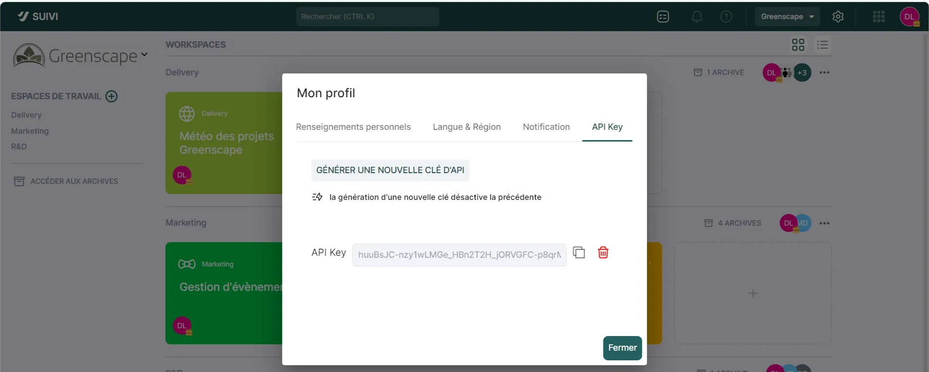 Connecting to Suivi APIs requires providing an API key associated with an Admin user account of the tenant.