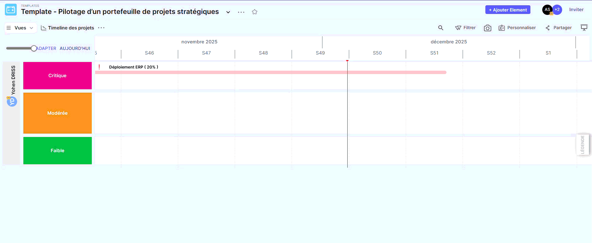 - Accédez à la section PILOTAGE et recherchez le template « Gestion de Projet ».