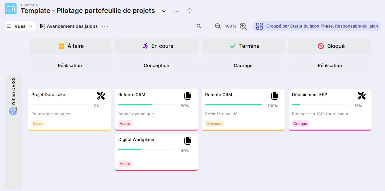Il est conçu pour les chefs de projet, les directeurs de projet, les PMO, ou toute personne en charge du pilotage d’un portefeuille de projet.