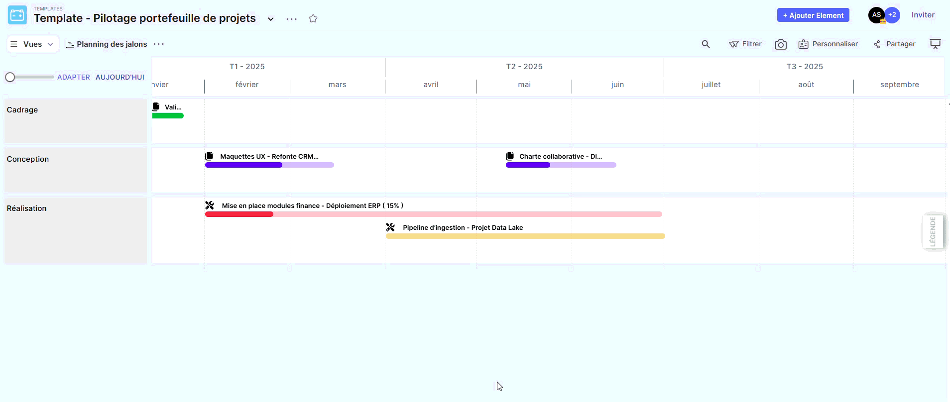 - Accédez à la section PILOTAGE et recherchez le template « Portefeuille de projets ».